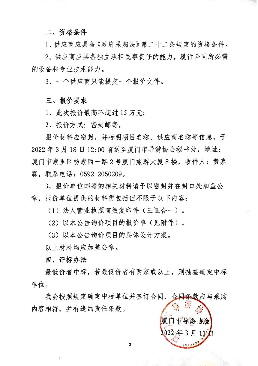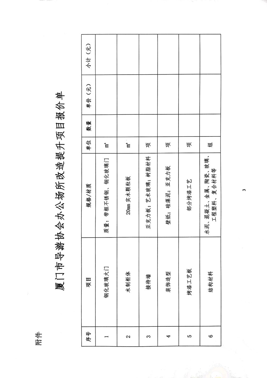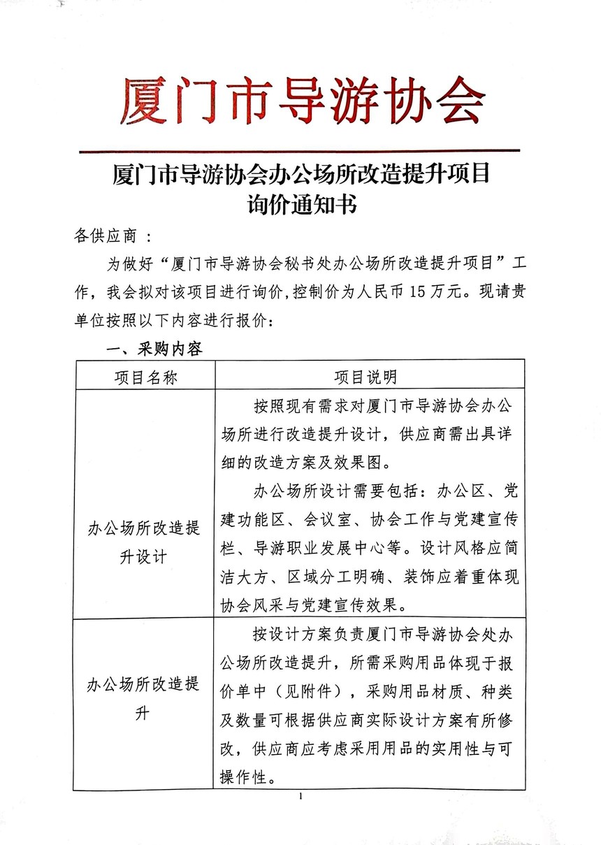 厦门市导游协会秘书处办公场所改造提升项目询价通知书