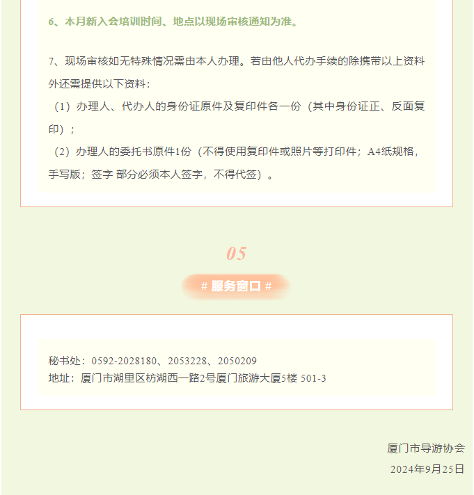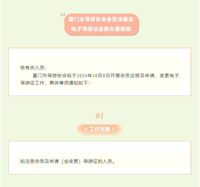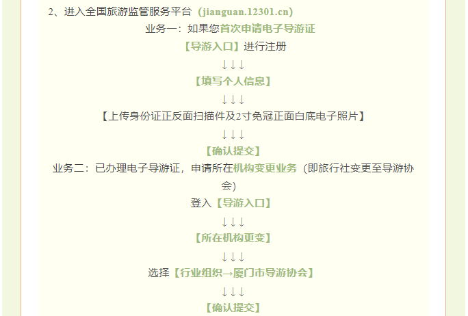 厦门市导游协会2024年10月会员注册及电子导游证业务办理的通知