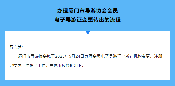 关于办理2023年5月协会会员电子导游证变更转出的业务通知