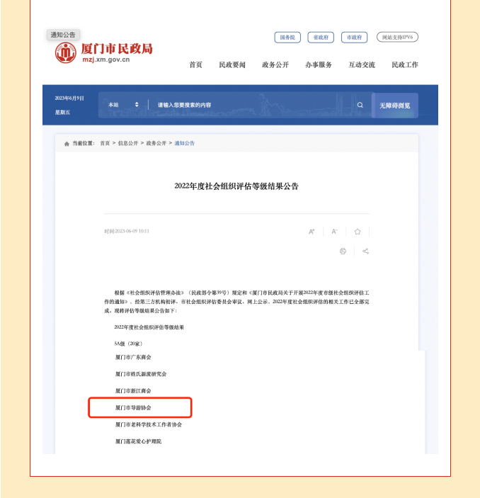 喜报!厦门市导游协会成功通过5A级社会组织评估!