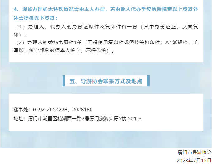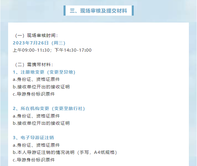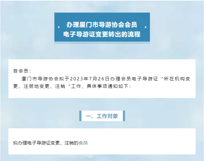 关于办理2023年7月协会会员电子导游证变更转出的业务通知