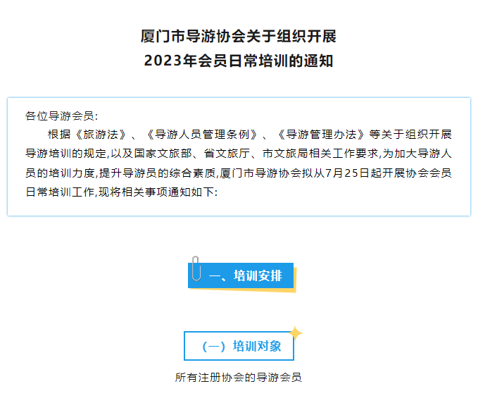 厦门市导游协会关于组织开展2023 年会员日常培训的通知