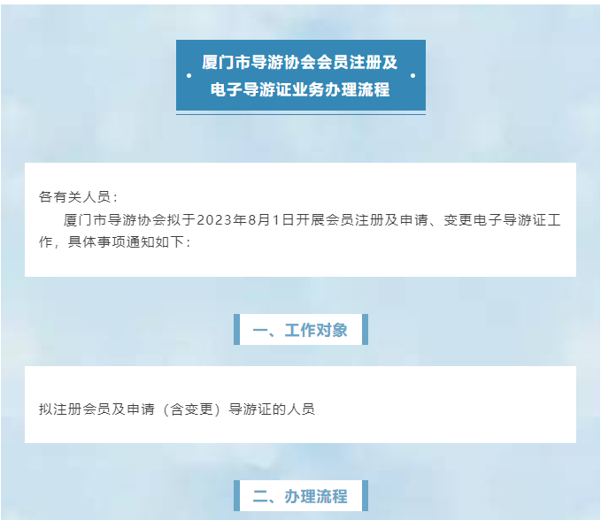 厦门市导游协会2023年8月会员注册及电子导游证业务办理的通知
