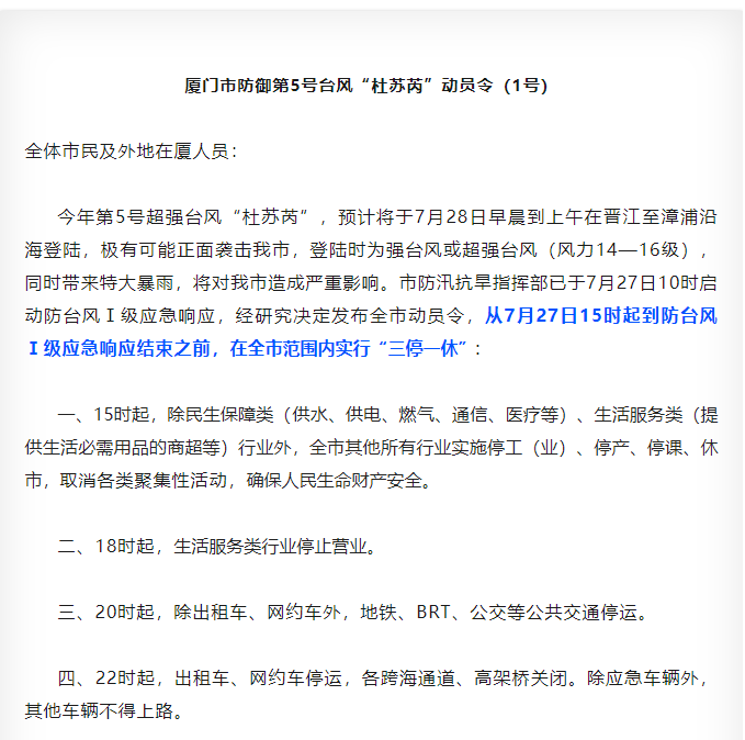 关注!厦门今年首次启动防台风一级响应!15时起全市“三停一休”!台风来袭如何应对?