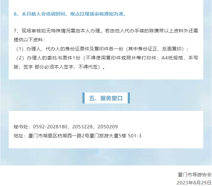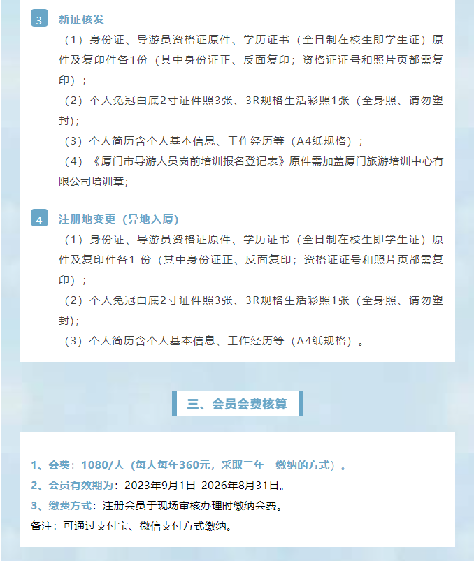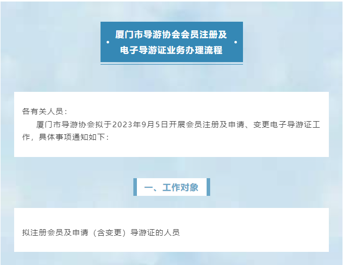 厦门市导游协会2023年9月会员注册及电子导游证业务办理的通知