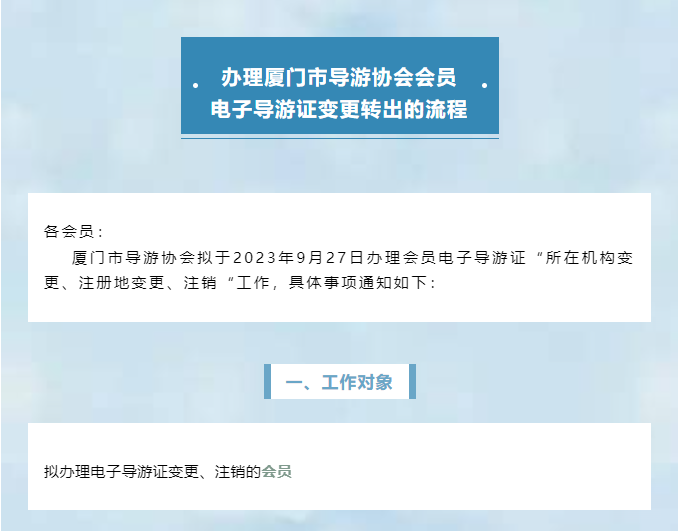 关于办理2023年9月协会会员电子导游证变更转出的业务通知