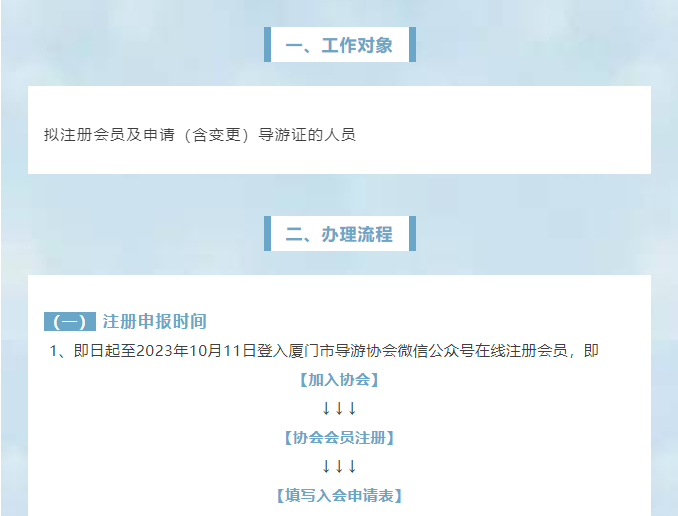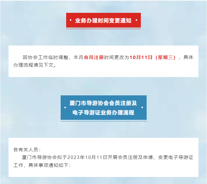 注意!时间变更!厦门市导游协会2023年10月会员注册及电子导游证业务办理的通知