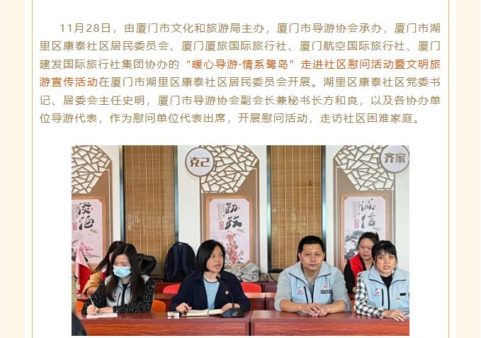 公益导游在行动,情暖冬日爱暖人心——“暖心导游·情系鹭岛”走进社区慰问活动暨文明旅游宣传活动圆满结束
