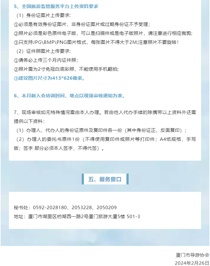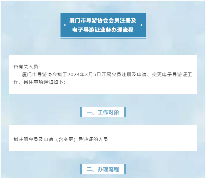 厦门市导游协会2024年3月会员注册及电子导游证业务办理的通知
