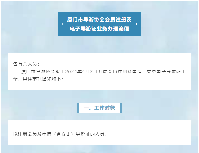 厦门市导游协会2024年4月会员注册及电子导游证业务办理的通知