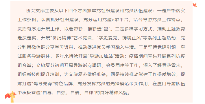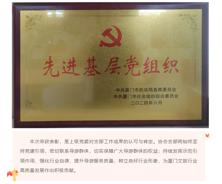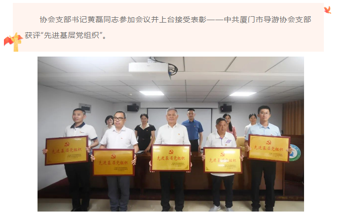 中共厦门市导游协会支部获评“先进基层党组织”!