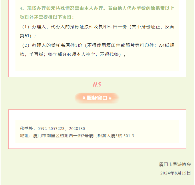 厦门市导游协会2024年8月协会会员电子导游证变更转出的业务通知