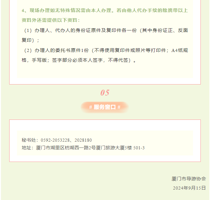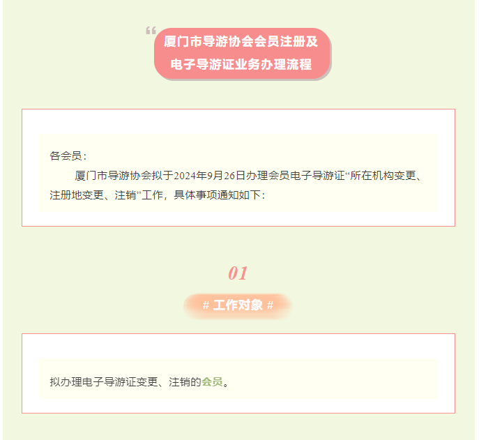 厦门市导游协会2024年9月协会会员电子导游证变更转出的业务通知