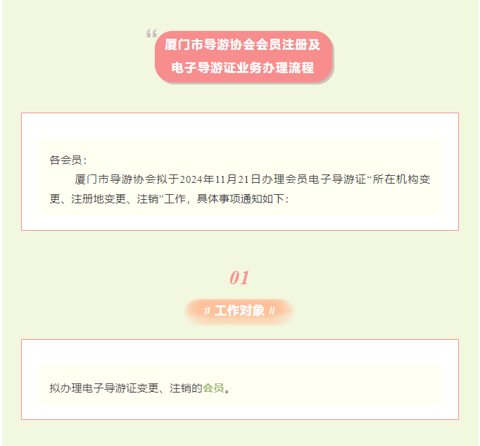 厦门市导游协会2024年11月协会会员电子导游证变更转出的业务通知