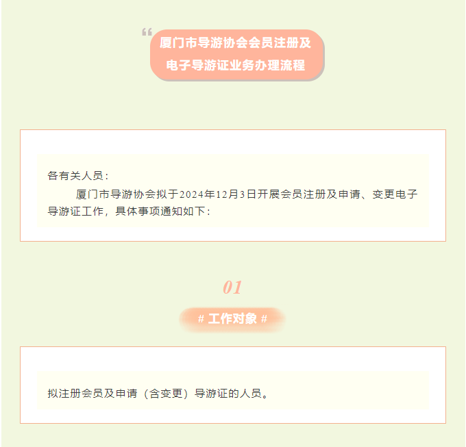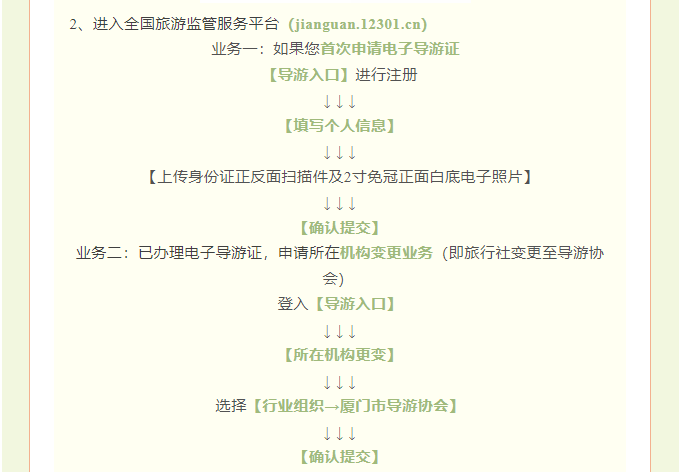 厦门市导游协会2024年12月会员注册及电子导游证业务办理的通知
