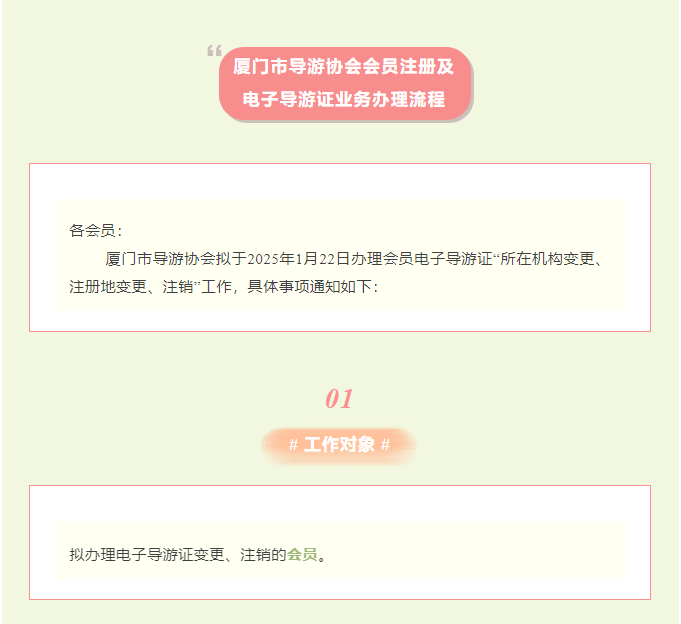 厦门市导游协会2025年1月协会会员电子导游证变更转出的业务通知