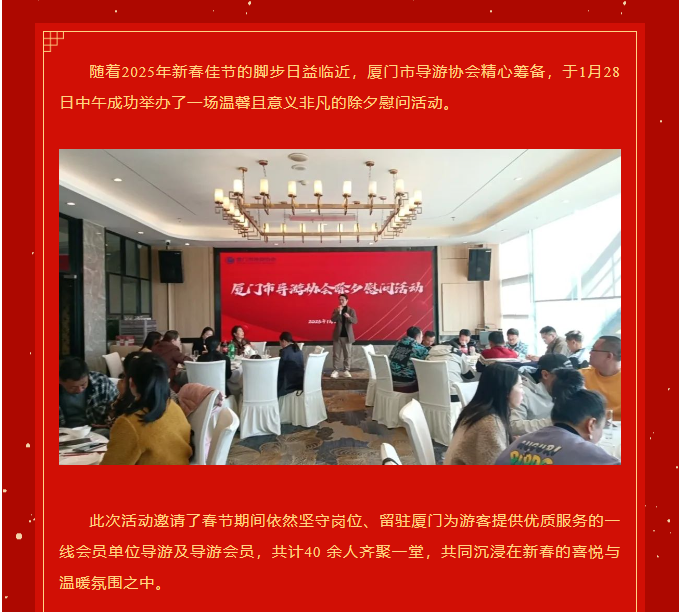 温情聚首,共贺新春,同绘未来——2025年厦门市导游协会除夕慰问活动圆满落幕