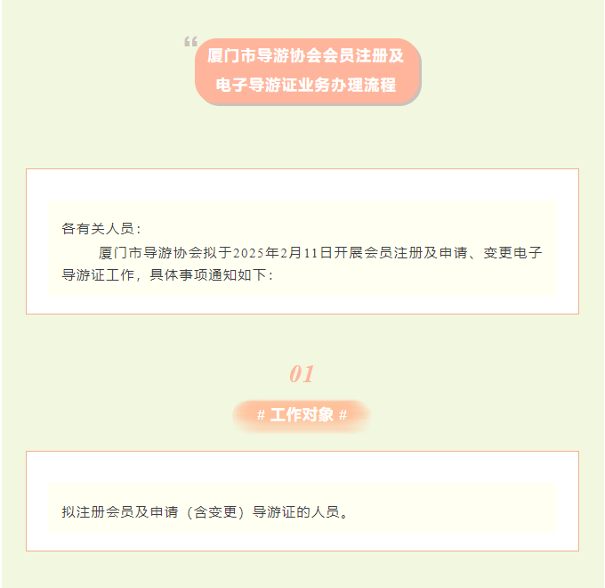 厦门市导游协会2025年2月会员注册及电子导游证业务办理的通知
