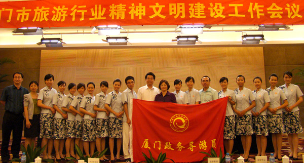 5 月18日 ,在厦门市旅游行业精神文明建设工作会议上,厦门市旅游局党组书记、代局长林世超为厦门政务导游员队伍授旗,标志着厦门政务导游员队伍正式成立。