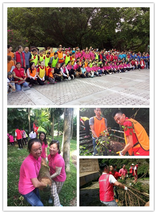 大队兵分7路,分别前往雨林区、棕榈岛、竹径、半岭、天界寺、五老峰、仙人掌园等区域,志愿者个个情绪高昂,身穿志愿者马甲,戴着手套,在各组组长的带领下,分工协作,不怕日晒、蚂蚁叮、虫咬,大家同甘共苦,齐心协力,艰苦奋战近8个小时,志愿者们肩扛手抬,徒手搬运、清理垃圾及装车,即便已抬到双手发抖都不愿停歇。