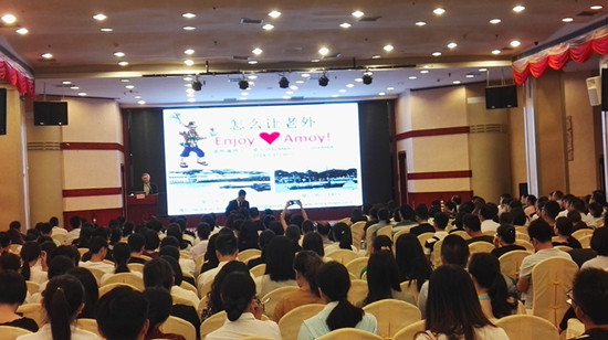 在后金砖时代,厦门作为国际旅游城市的品牌影响力不断扩大,为了更专业、生动地向境外游客介绍美丽厦门,更好地提升我市旅游从业人员的英语服务交流能力,根据2018年厦门市旅游饭店服务英语等级考试与培训的安排,5月30日,厦门市旅游发展委员会主办,厦门旅游培训中心承办的如何用英文形象生动推介厦门专题讲座顺利举办。福建省优秀外国专家、厦门市荣誉市民、厦门大学工商管理教育中心潘维廉教授就相关主题进行了精彩演讲,饭店、旅行社、景区及市导游协会、旅游院校等单位400多人出席了讲座。